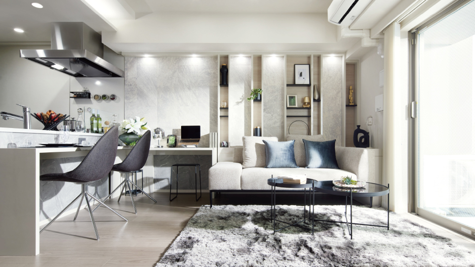 ※掲載の写真はモデルルーム(Aタイプ)を撮影(2025年7月)したものです。タイプにより室内の形状・色彩・仕様等は異なります。また、一部有償オプションが含まれております。なお、家具・備品等に関しては配置例を示したもので販売価格には含まれません。