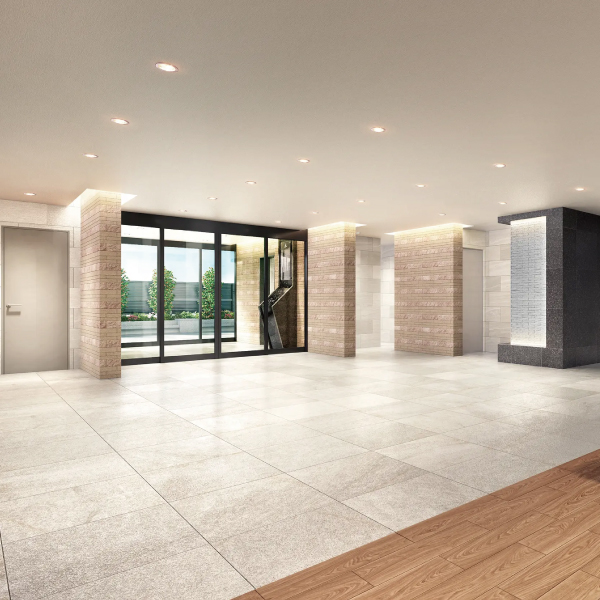 ※掲載の各完成予想図は、計画段階の図面を基に描き起こしたもので、官公庁の指導、施工上の都合等により建物の形状・色調・植栽等に変更が生じる場合がございます。植栽は特定の季節の状況を表現したものではなく、竣工時には予想図程度には成長しておりません。また周辺の建物等は省略しております。予めご了承ください。