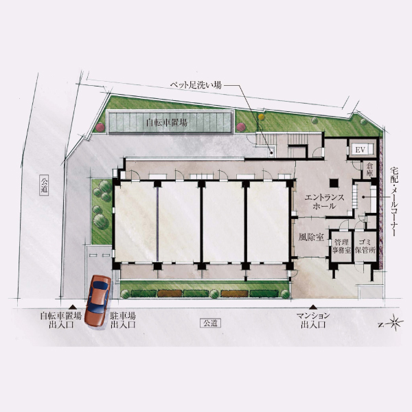 ※掲載の敷地配置図イメージイラストは設計段階の図面を基に描かれたもので実際とは異なる場合があります。