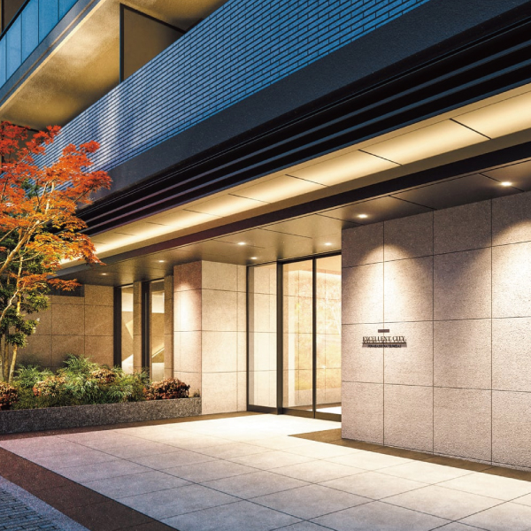 ※掲載の外観完成予想CG、敷地配置図は計画段階の図面を基に描いたもので実際とは異なります。なお、外観・内観の細部・設備機器・配管類等は一部省略又は簡略化しております。植栽につきましては特定の季節の状況を表現したものではなく、竣工時には完成予想図程度には成長しておりません。樹種は一部変更になる場合があります。タイルや各種部材につきましては実物と質感・色等の見え方が異なる場合があります。また今後変更になる場合があります。