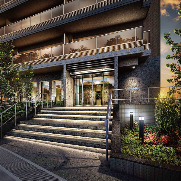 ※掲載の完成予想CGは計画段階の図面を基に描いたもので、実際とは異なります。なお、外観の細部・設備機器・配管類等は一部省略または簡略化しております。植栽につきましては特定の季節の状況を表現したものではなく、竣工時には完成予想CG程度には成長しておりません。樹種は一部変更になる場合があります。タイルや各種部材につきましては実物と質感・色等の見え方が異なる場合があります。また、今後変更になる場合があります。