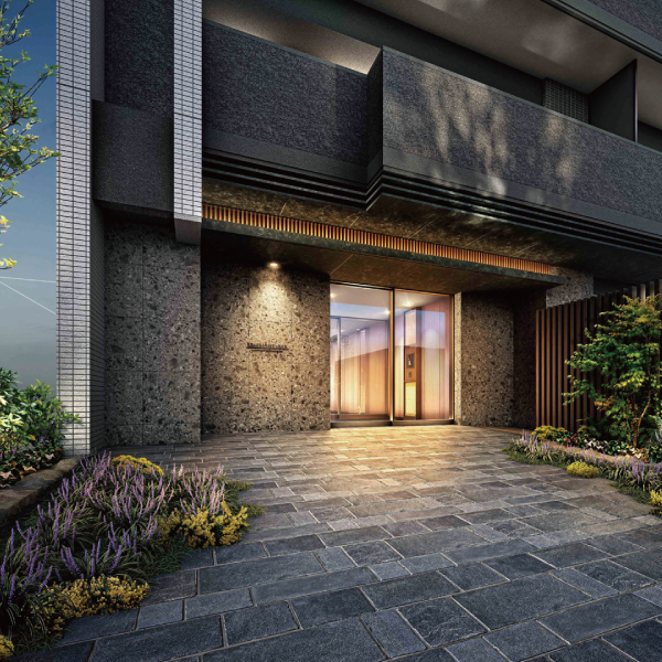 ※掲載の建物完成予想図は計画段階の図面を基に描いたもので実際とは異なります。なお、外観の細部・設備機器・配管類等は一部省略又は簡略化しております。植栽につきましては特定の季節の状況を表現したものではなく、竣工時には完成予想図程度には成長しておりません。樹種は一部変更になる場合があります。タイルや各種部材につきましては実物と質感・色等の見え方が異なる場合があります。また今後変更になる場合があります。