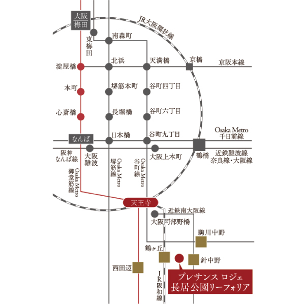 | 交通 | 近鉄南大阪線「針中野」駅 徒歩9分 JR阪和線「鶴ヶ丘」駅 徒歩12分 Osaka Metro谷町線「駒川中野」駅 徒歩15分 Osaka Metro御堂筋線「西田辺」駅 徒歩18分 |
