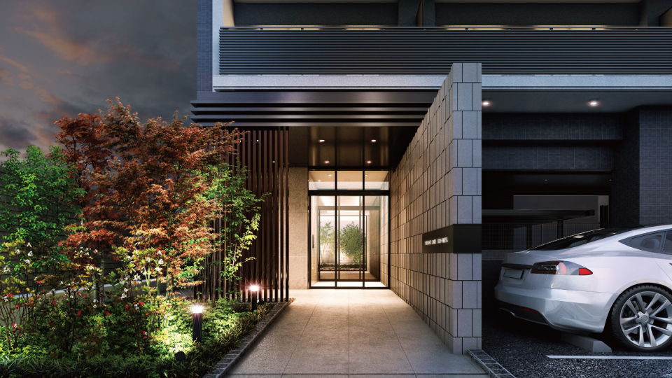 ※植栽につきましては特定の季節の状況を表現したものではなく、竣工時には完成予想図程度には成長しておりません。また、季節ごとの樹木を同時に描いております。植栽は計画段階のものであり、樹種等が変更になる場合があります。あらかじめご了承ください。