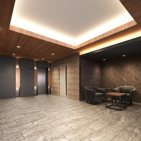 ※掲載の外観・エントランスアプローチ・エントランスホール完成予想図、ランドプランイメージイラストは図面を基に描き起こしたもので、外観・外構・植栽・色彩・照明等は実際とは異なる場合がございます。行政官公庁の指導、施工上の都合および改良等のため設計・仕様・外構工事等に変更が生じる場合があります。また、現地周辺の建物等を省略して描いております。