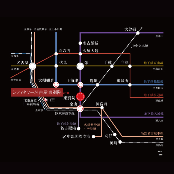 | 交通 | 名古屋市営地下鉄名城線「東別院」駅まで徒歩8分 名鉄名古屋本線「金山」駅まで徒歩15分 名古屋市営地下鉄東山線「伏見」駅まで徒歩22分 名古屋市営地下鉄鶴舞線「大須観音」駅まで徒歩12分 名古屋市営地下鉄名城線「上前津」駅まで徒歩13分 名古屋市営地下鉄鶴舞線「上前津」駅まで徒歩13分 JR中央本線「金山」駅まで徒歩15分 JR東海道本線「金山」駅まで徒歩15分 名古屋市営地下鉄鶴舞線「伏見」駅まで徒歩22分 名古屋市営地下鉄東山線「栄」駅まで徒歩29分 名古屋市営地下鉄名城線「栄」駅まで徒歩29分 |